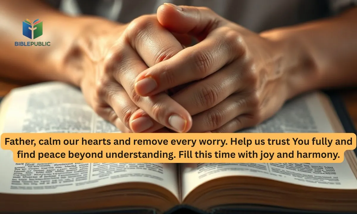 Father, calm our hearts and remove every worry. Help us trust You fully and find peace beyond understanding. Fill this time with joy and harmony.